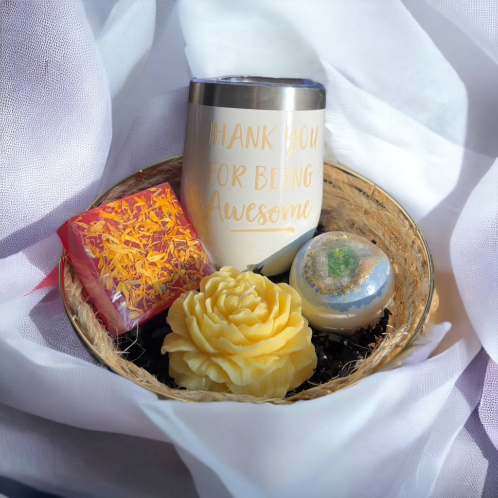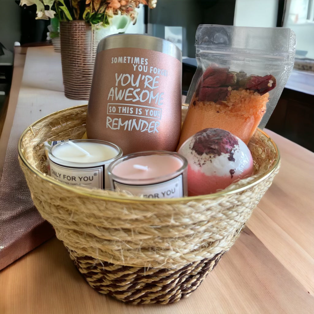Discover the ultimate self-care delight with our incredible gift basket! We've put together a dreamy collection that will turn your me-time into a blissful escape. Get ready to immerse yourself in the enchanting world of scented candles, soaps, and bath bombs that will transport you to pure relaxation!